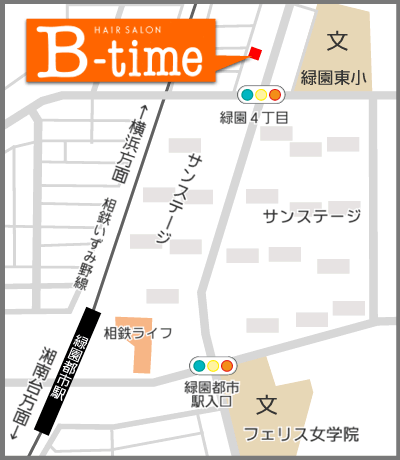 | すぐ目の前が「ヘアーサロン B-time」です。 |